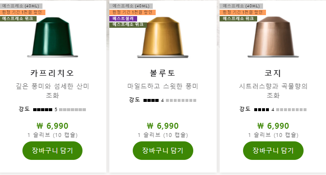 네스프레소 버츄오 캡슐커피 종류 가격 구입하기