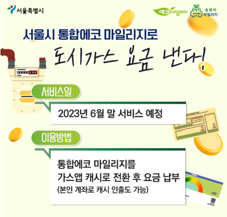 서울시 내 가정이나 사업장에서 전기, 도시가스, 수도 등의 에너지를 절약한 정도에 따라 마일리지를 제공하는 서울시에서 제공하는 서비스입니다. 에코마일리지에 참여한 효과로는 에너지 사용량과 절감률을 확인 가능하고 에너지 절감정도에 따라 마일리지를 적립해 주며 온실가스 감축을 통한 환경보호에도 앞장설 수 있습니다.
