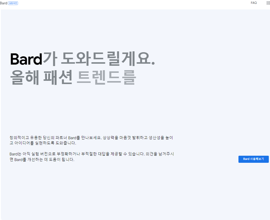 ♣ 구글 바드( Bard) 시작 전 화면
