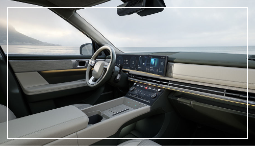 이번 산타페의 윈도는 모두 블랙 하이그로시로 마감하여서 본체가 더욱 커졌지만 천장이 낮아 보이는 효과를 주어 좀 더 안정되고 한 층 더 고급스러운 디자인을 보여주고 있습니다.