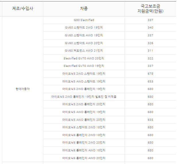 차량의 종류와 차량을 만든 회사에 따라 각기 지원금액이 상이하게 다르므로 상세히 살펴보셔야 합니다.